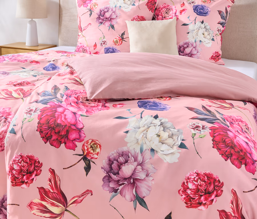 Kétoldalas renforcé ágynemű, virágos, rózsaszín, kétszemélyes