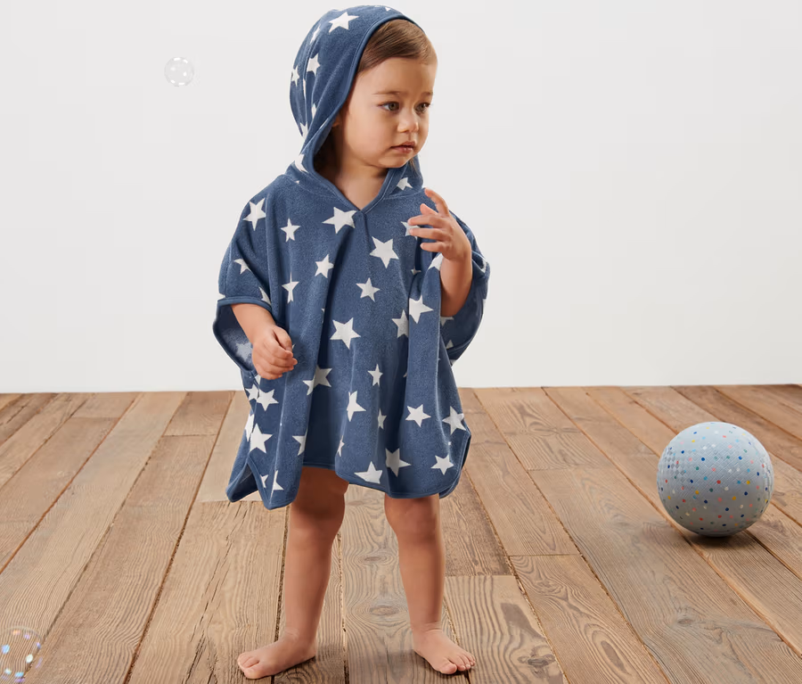 Kisgyerek kapucnis frottírponcsó, kék