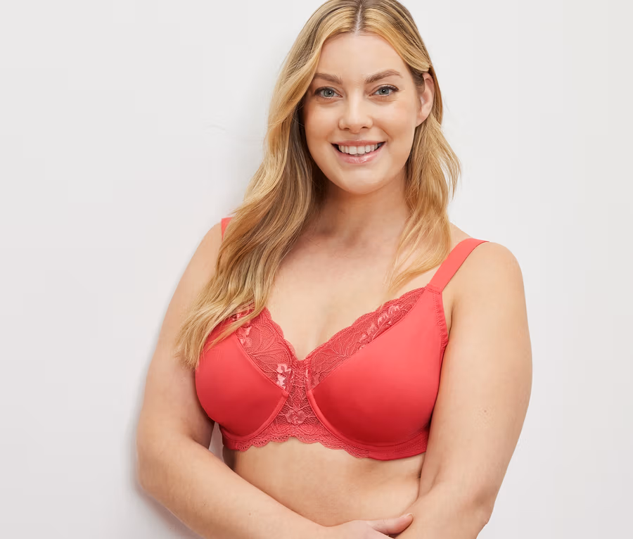 Női kicsinyítő melltartó, csipkés, korall