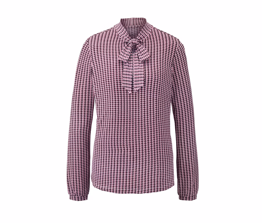 Egy felső, számos variáció: ebben a masnis felsőben mindig pompásan fognak mutatni a hölgyek, hiszen a viszkózból készült, lágy esésű blúz nyakkivágását egy olyan masni díszíti, amely többféleképpen is viselhető. Akár masninak megkötve, akár lazán megcsomózva - a variációknak köszönhetően mindig változatosan hordható. A mutatós tyúklábmintás felső rávarrt ujjmandzsettái finoman húzottak. És hogy a sztreccsblúz formatartó maradjon és tökéletesen álljon, anyaga elasztánt is tartalmaz.