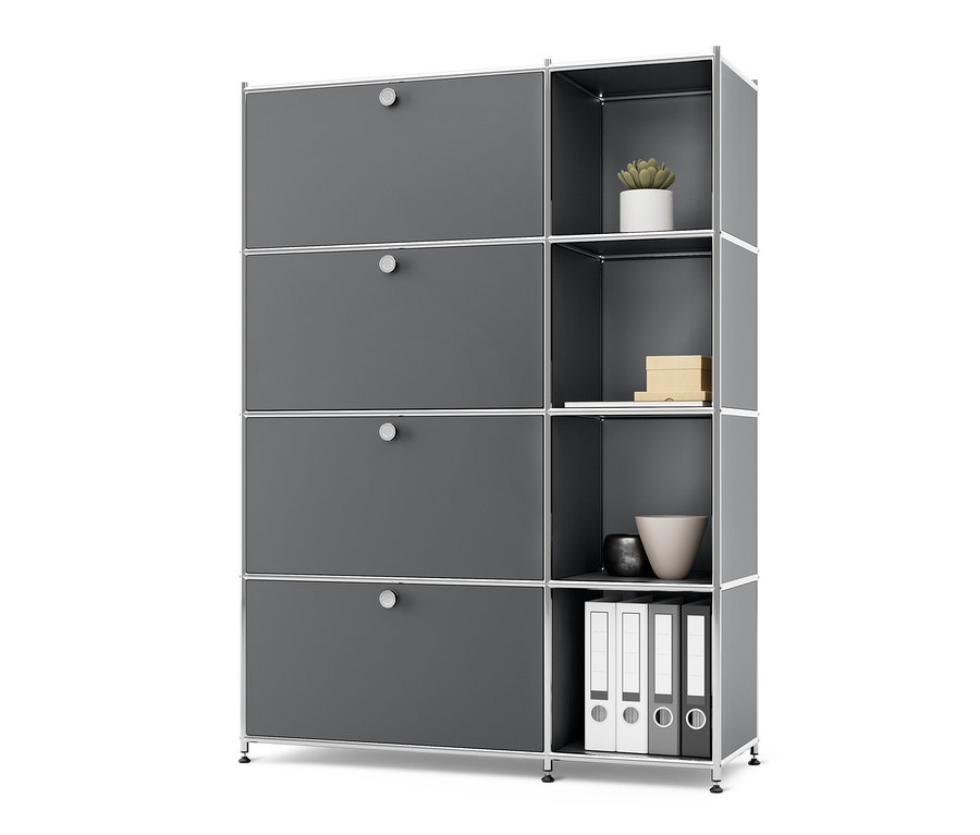 Fémpolc »CN3« 4 lenyíló ajtóval, szürke