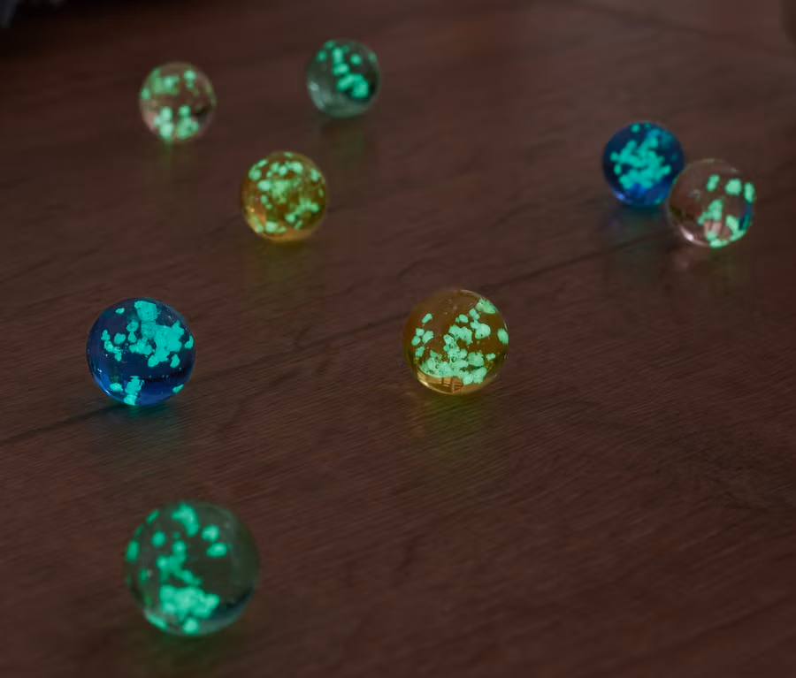 Sötétben világító üveggolyó készlet, 8 db