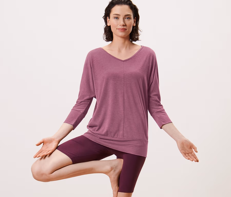 Női 3/4-es ujjú jógafelső, mályva