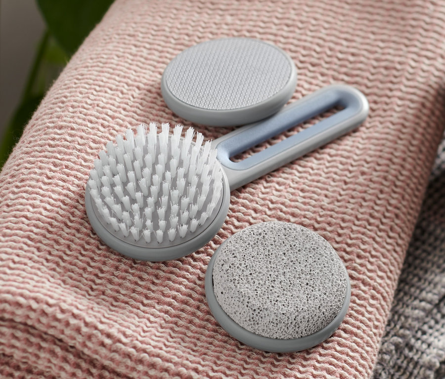 3 különböző kerek fejjel (finom szemcsés a radírozáshoz, habkő, kefe)