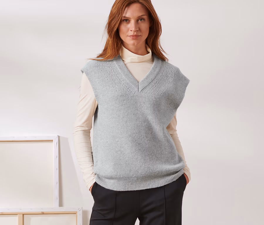 - V- nyakkivágás kétrétegű anyagból a forma nyúlás utáni jobb visszanyeréséért