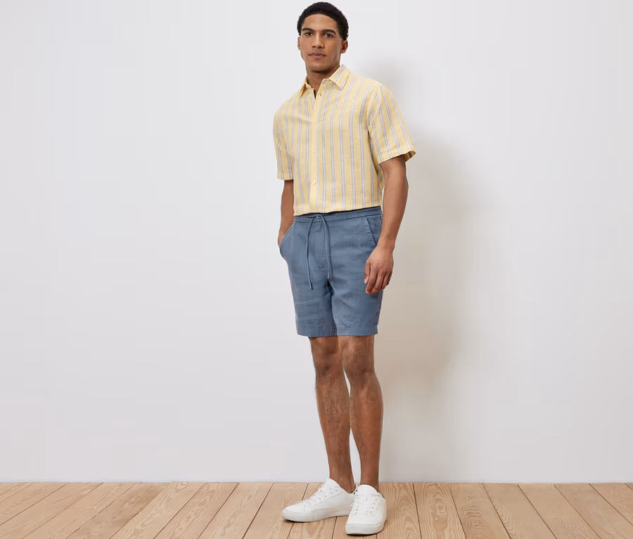 Férfi lenvászon rövidnadrág, kék