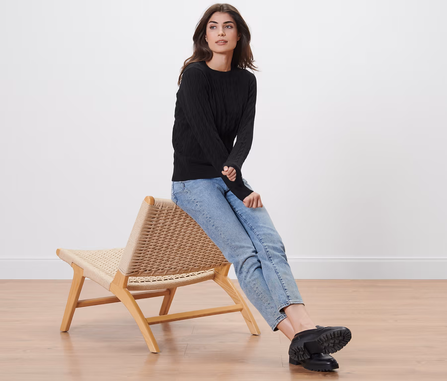 Fonott mintás, kötött pulóver, fekete