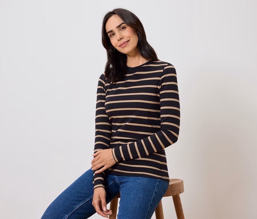 Női hosszú ujjú felső, csíkos, fekete/világosbarna