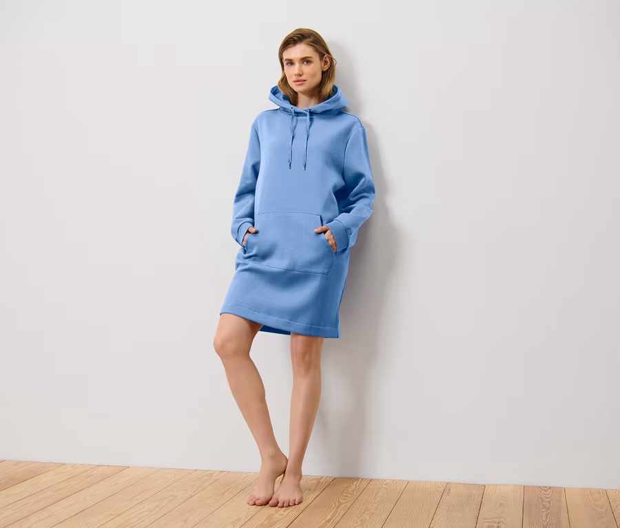 Női lezser ruha, kapucnis, világoskék