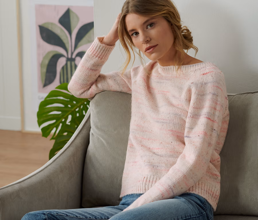 Női laza kötésű pulóver, színes