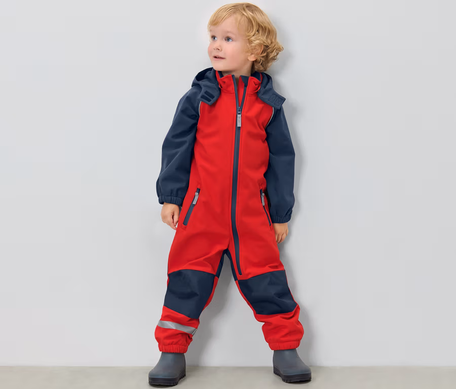 Gyermek softshell kezeslábas, piros-kék