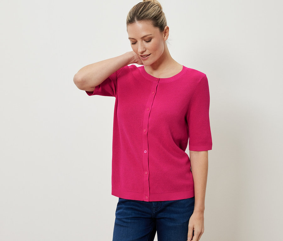 - Ez a finomkötésű kardigán tartós fából származó szálakat tartalmaz.