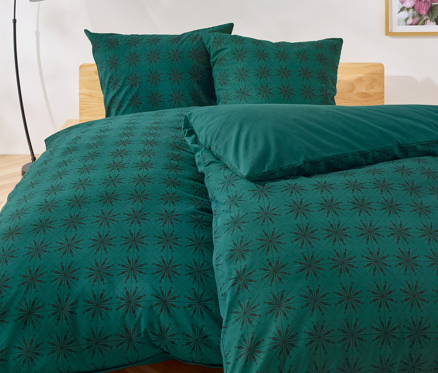 Pamutflanel ágynemű, csillagos, sötétzöld, kétszemélyes