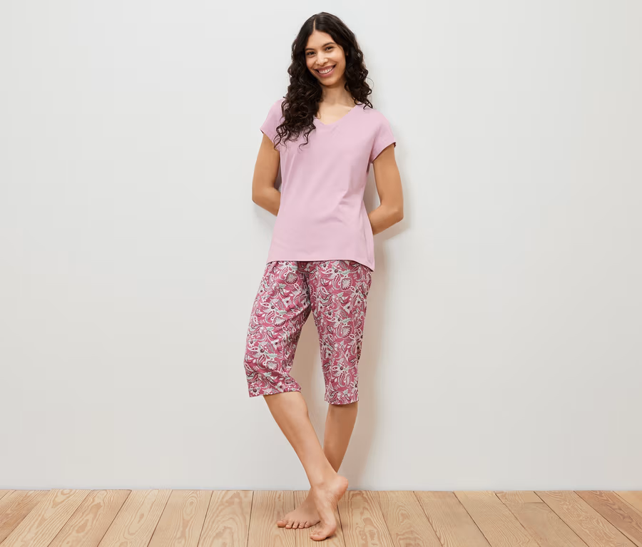 Női 3/4-es pizsama, paisley/rózsaszín