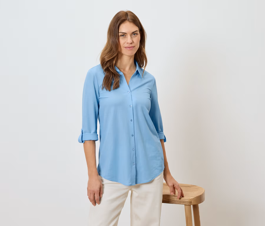 Női piké jersey blúz, világoskék