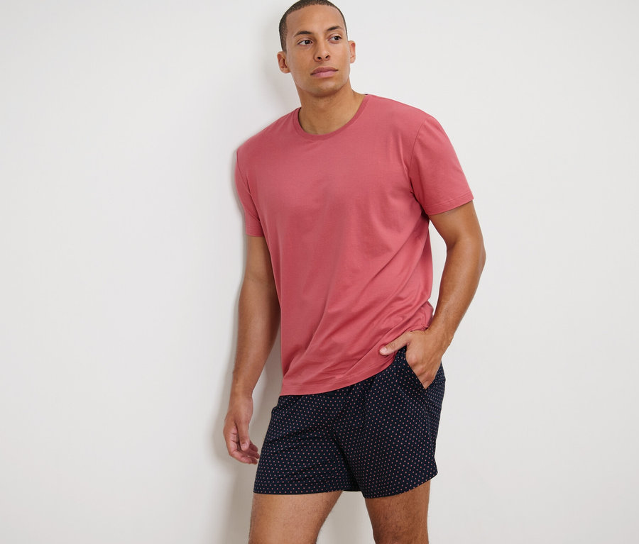 Férfi rövidnadrágos pizsama, mintás/papaya