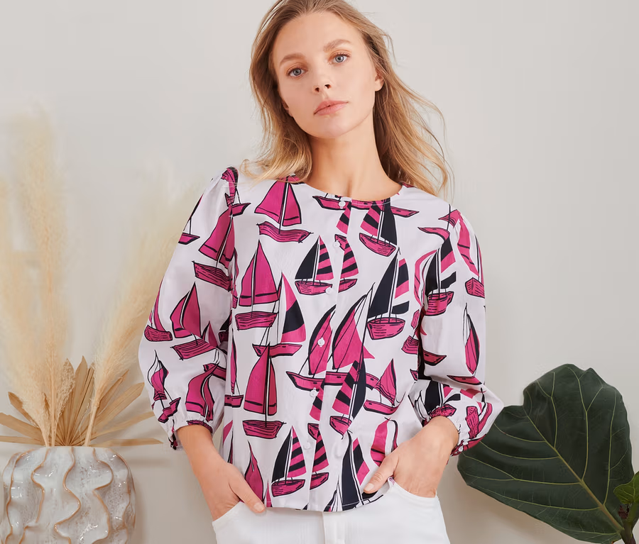 Női 3/4-es ujjú blúz, vitorlás mintás