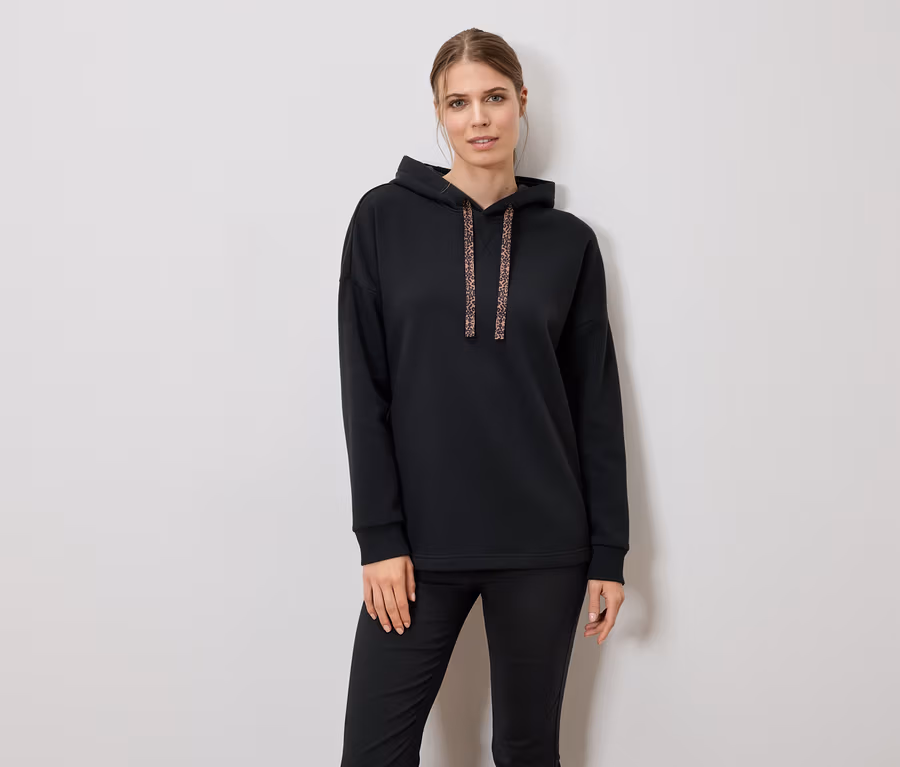 Női kapucnis szabadidőfelső, fekete
