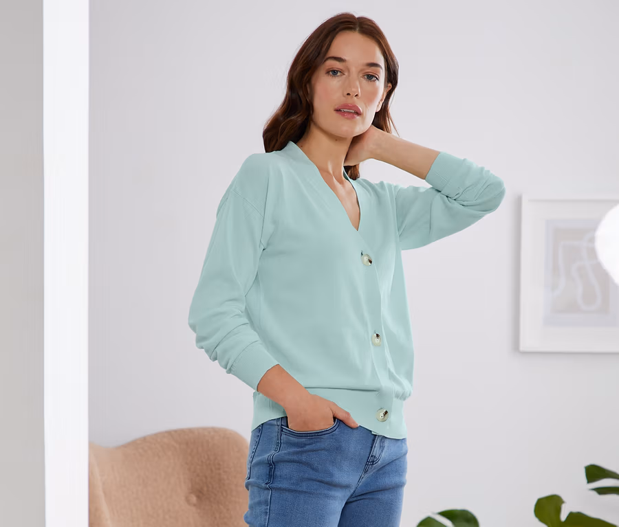 - Rugalmas, bordás kötésű szegély a nyakkivágásnál, a gomboláspántnál, az ujjvégeknél és a derékrészen