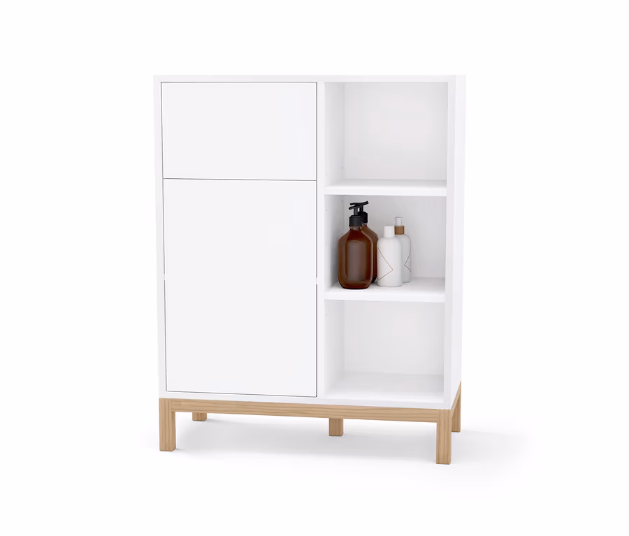 Fürdőszobai komód, 1 ajtós, 1 fiókos, fehér