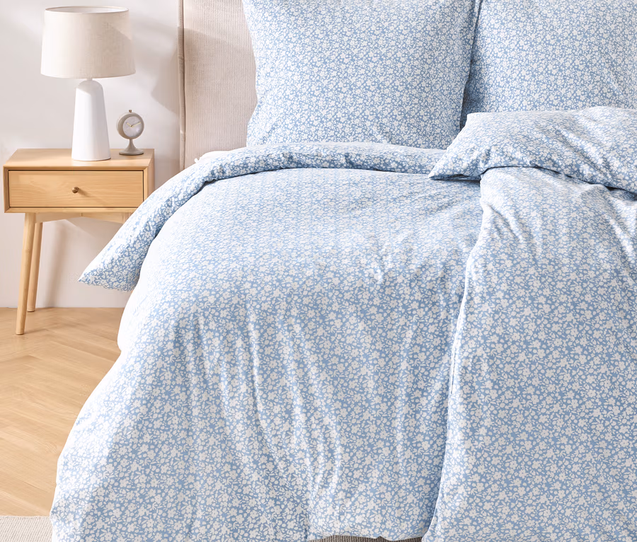 Jersey ágynemű, virágos, világoskék, egyszemélyes