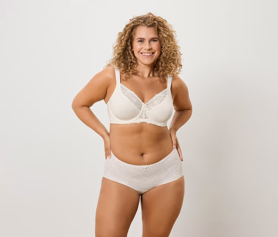 Női magasderekú alsó, alakformáló, csipkés, krém