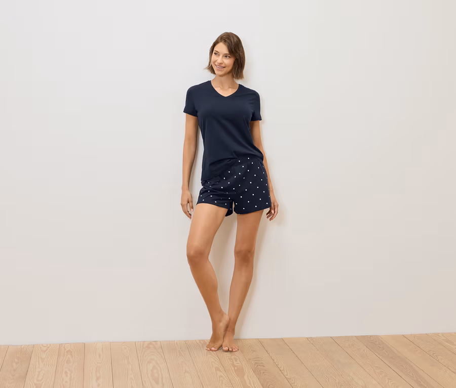 Női rövidnadrágos pizsama, pöttyös, sötétkék