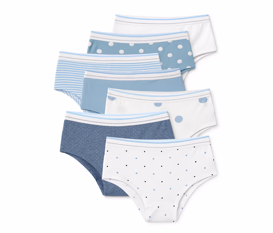 7 lány magas derekú alsó szettben, pöttyös, világoskék