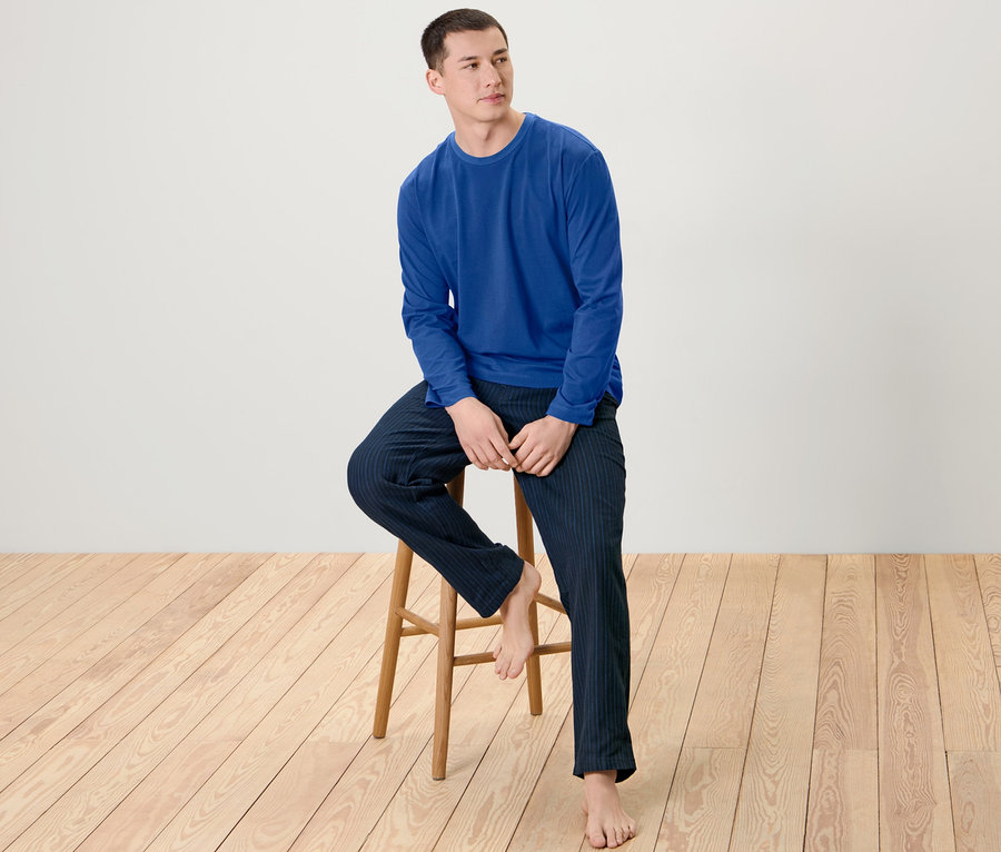Férfi pizsama flanelnadrággal, sötétkék/kék