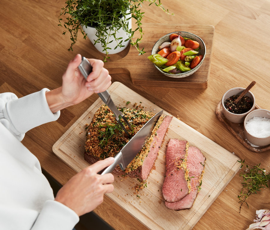 - A szeletelőkés kiváló minőségű pengeacélból és szeletelővilla nemesacélból