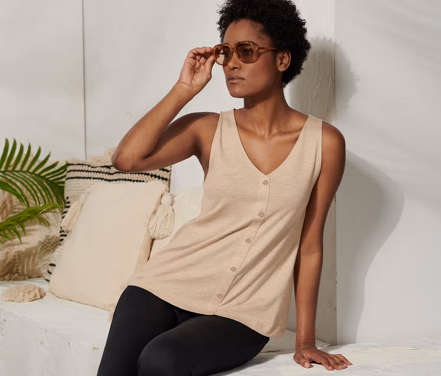 Női top, gombos, bézs