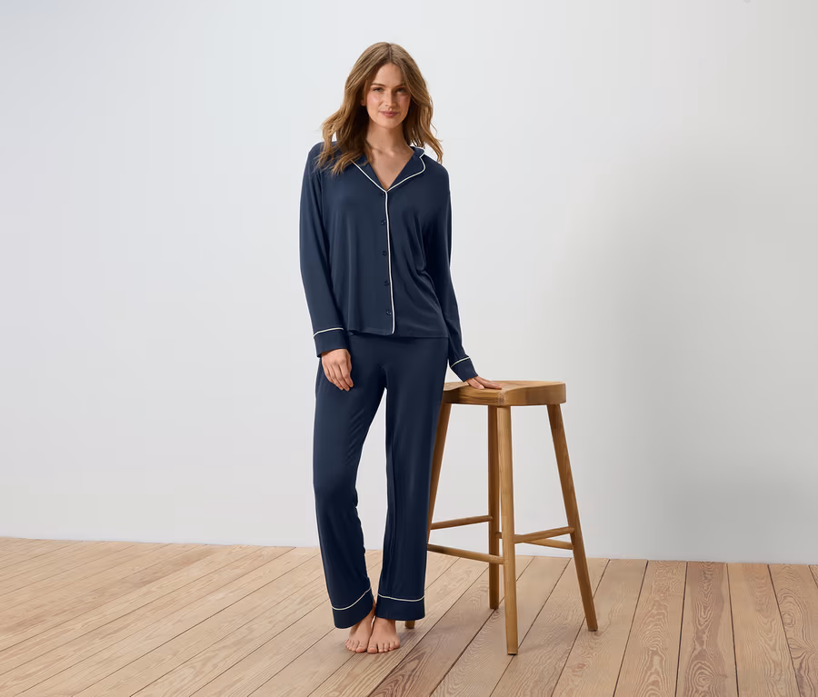 • Ez a pizsama fenntartható fából származó szálakat tartalmaz.