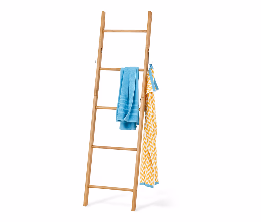 - 5 teherbíró létrafokon biztosít rengeteg helyet a fürdőszoba textilek és ruhadarabok számára