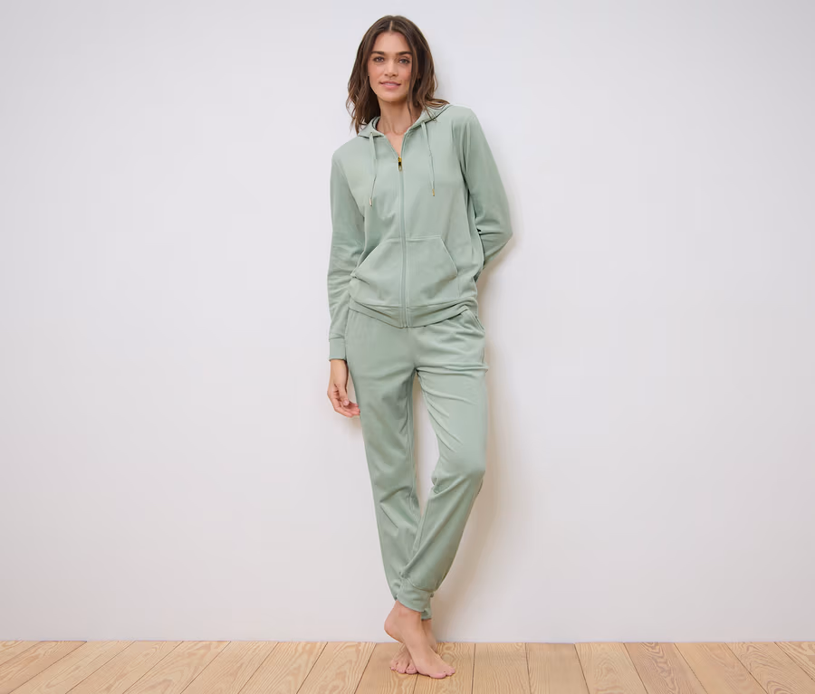 Női plüss szabadidőszett, zsálya