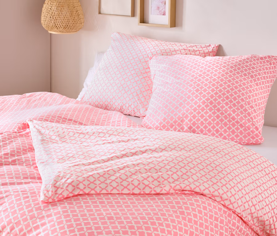 Kétoldalas jersey ágynemű, mintás, rózsaszín, egyszemélyes