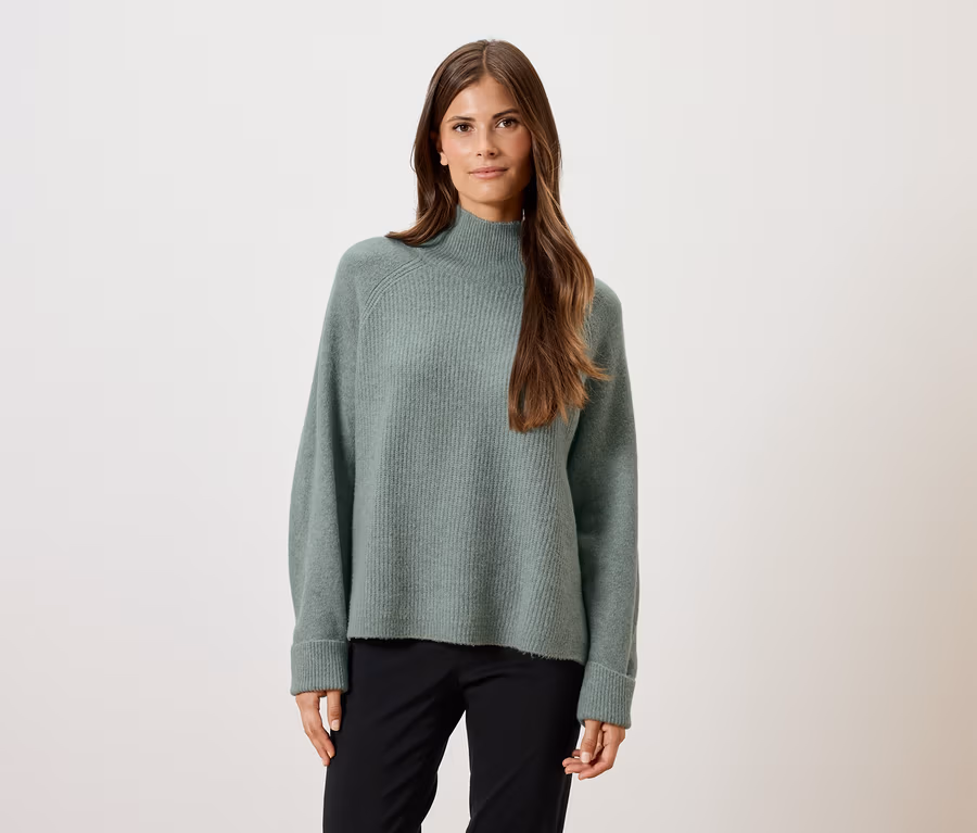 Női magas nyakú pulóver, zsályazöld