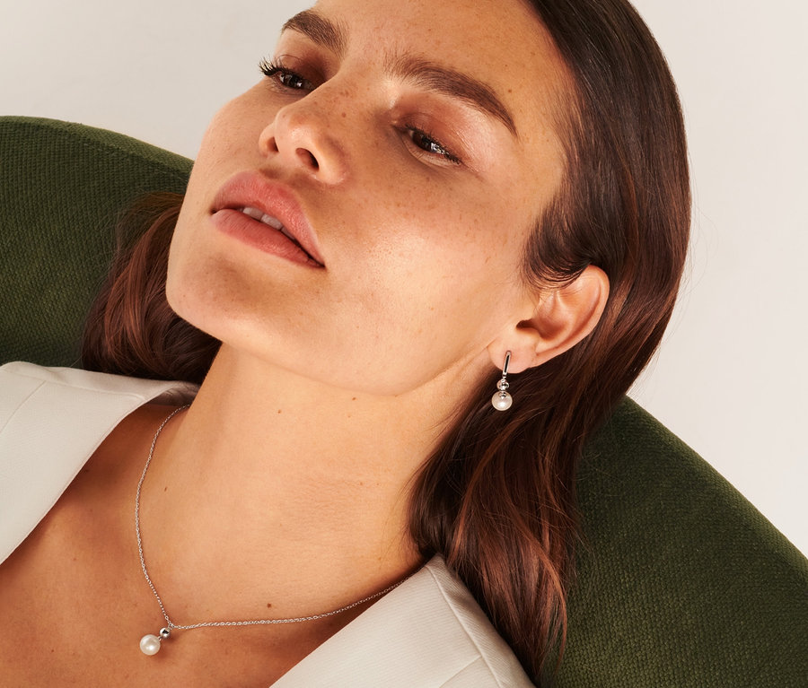 925-ös ezüst nyaklánc gömbbel és gyönggyel
