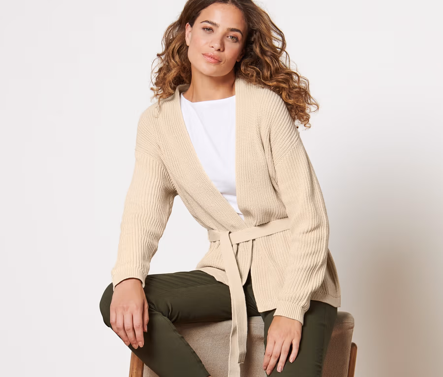 - Kötött kardigán levehető megkötővel