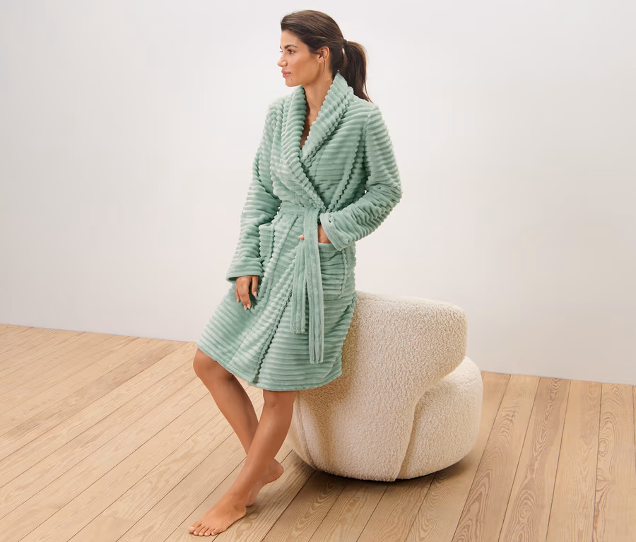 Női plüssköntös, zsálya