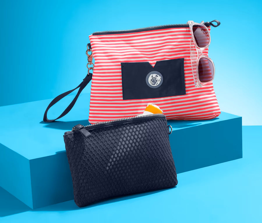 Ez a két táska sokoldalúan használható. Legelőnyösebb tulajdonságaik egyike strapabíró külső anyaguk, melynek ugyanakkor a megjelenése is tetszetős. Mindkét táska rendelkezik cipzáras főrekesszel, valamint levehető hordozófüllel, és egyszerűen, nedves kendővel tisztíthatók. A kicsi táska Mesh anyagból készült, és kiváló különféle strandkiegészítők, pl. naptej tárolására. A nagy táskán egy rátett zseb is található, melyet egy kis szilikonembléma díszít.
