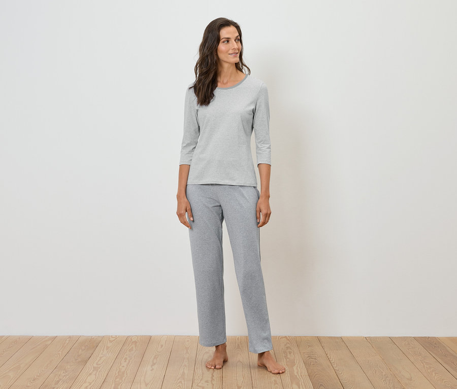 Női 3/4-es ujjú pizsama, szürke/csíkos