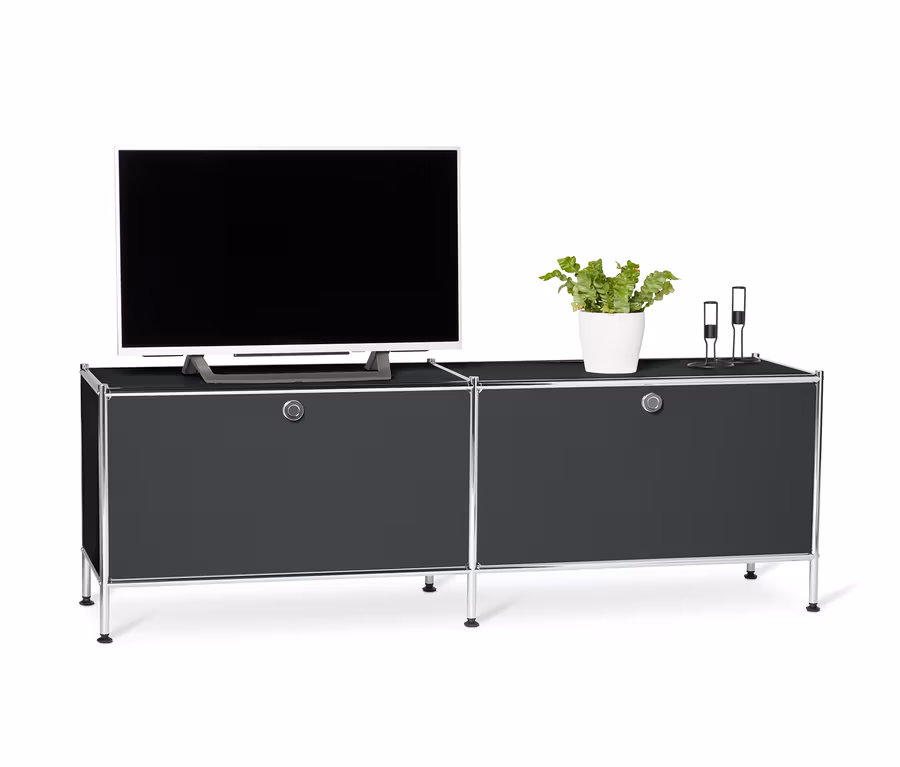 - TV állvány krómozott lábakkal és állítható magasságú műanyagtalpakkal, hogy a bútor egyenetlen felületeken is stabilan álljon