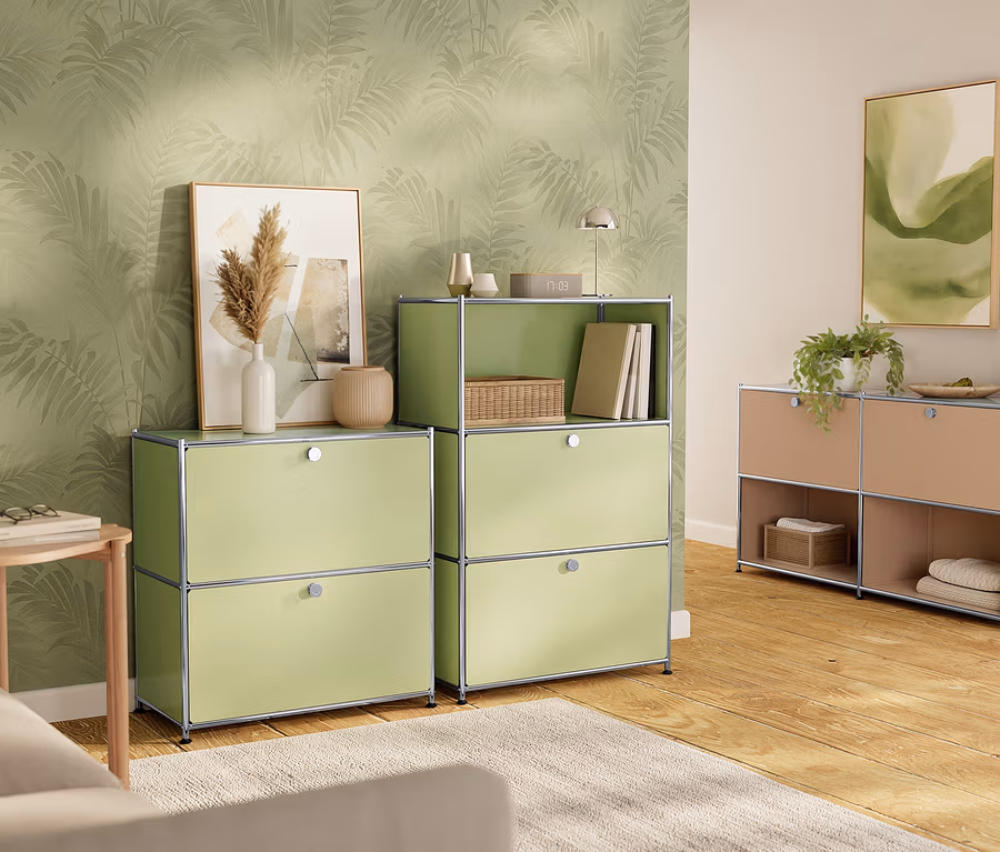 »CN3« fém komód, 2 áthelyezhető lenyíló ajtós rekesszel, pisztáciazöld