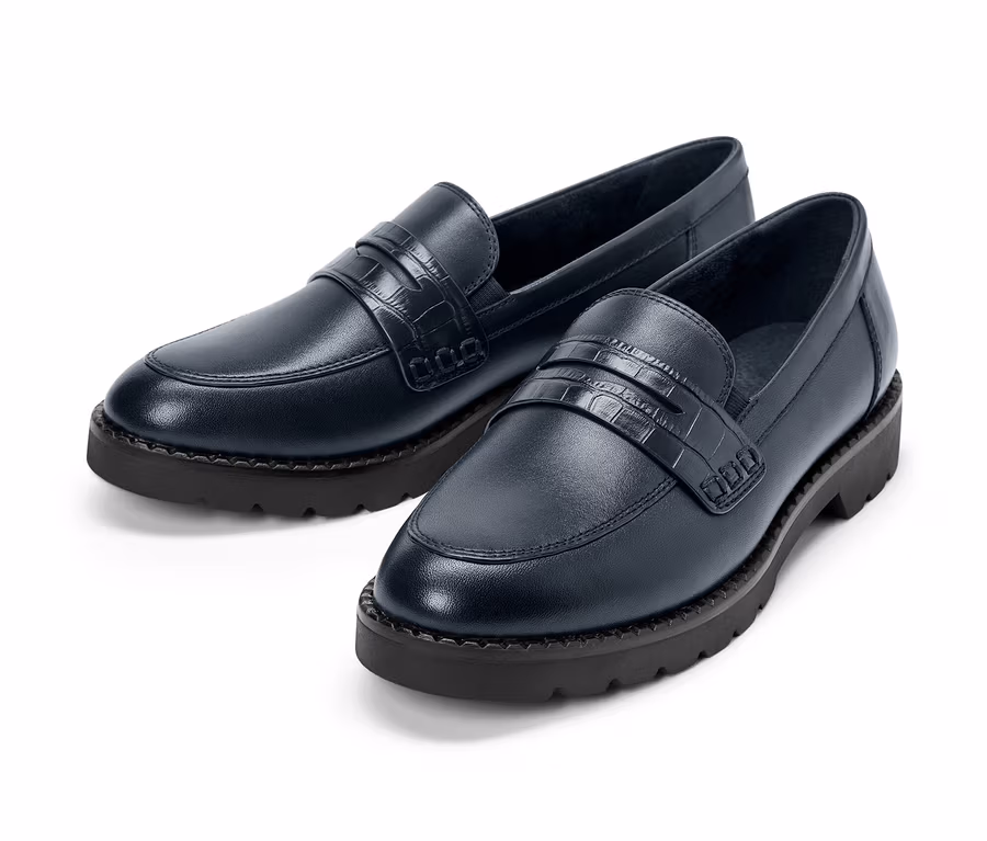 Női bőr mokaszin, sötétkék