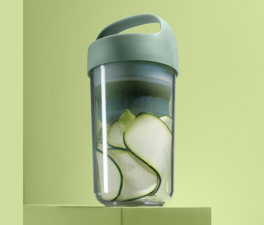 Apropó száraz: a doboz 100%-ig kifolyásbiztos, ezáltal az olyan szilárd ételeken kívül, mint a saláta vagy a zöldségcsíkok, olyan folyékony hozzávalókhoz is használható, mint a joghurt vagy a leves. A doboz körülbelül 600 milliliter űrtartamú, az összehajtható szilikonbetét pedig igény esetén dupla méretűre kihajtható.