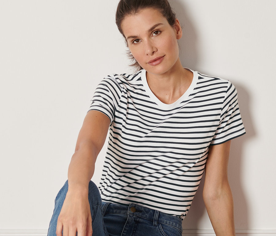 Női póló, csíkos, fehér/antracit