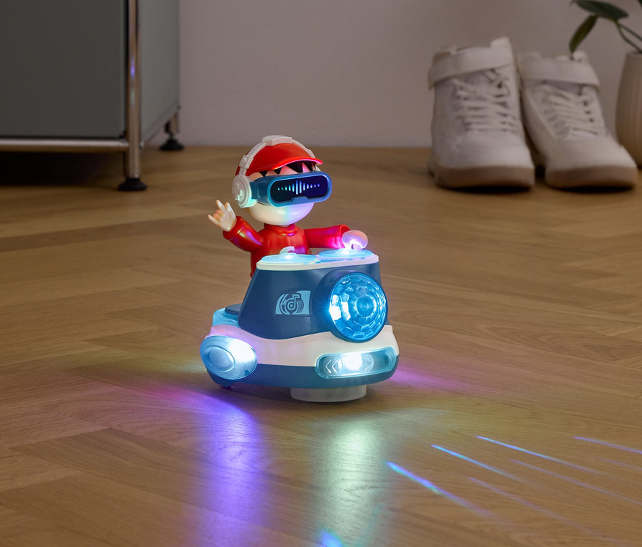 - A DJ kerekeken forog, és önállóan mozog (balra/jobbra)