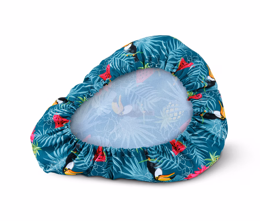Ha a nyereg nedves, nem szívesen pattanunk fel drótszamarunkra. Annak érdekében, hogy eső után is gondtalanul kerekezhessünk, ez a kerékpáros üléshuzat lesz segítségünkre: megbízható védelmet nyújt az eső, az időjárás viszontagságai és a szennyeződések ellen. A védőeszköz a guminak köszönhetően egyszerűen fel- és levehető, valamint a legtöbb kereskedelmi forgalomban kapható modellhez illik. Kerékpározás közben kis helyen tárolható. A trópusi minta régebbi a nyergeknek is új, üde megjelenést kölcsönöz.