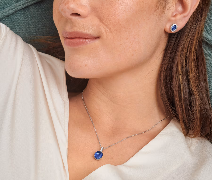 Nyaklánc, ródiummal bevont 925-ös ezüst, kék kristállyal és cirkóniával