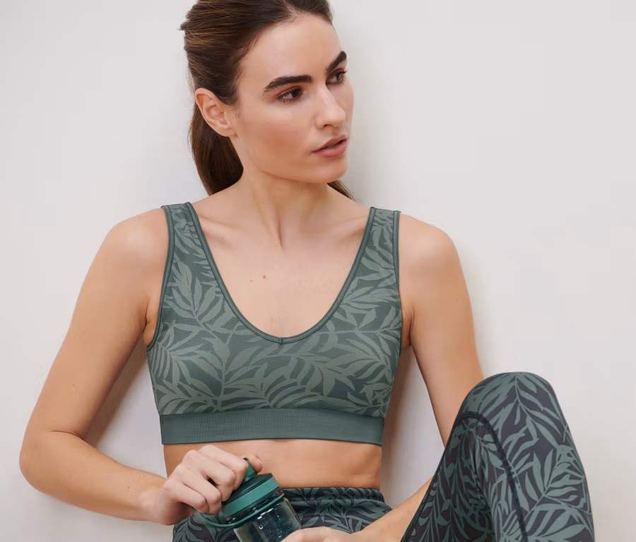 Varrásmentes sportmelltartó, zsályazöld